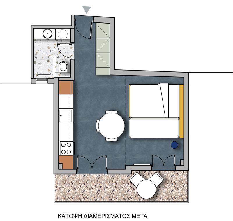 Διαμέρισμα 33τ.μ. στον Νέο Μαρμαρά Χαλκιδικής ανακαινίστηκε με στόχο να χρησιμοποιηθεί ως κατάλυμα προσωρινής κατοίκησης, μεταμορφώνοντάς το σε έναν χώρο που συνδυάζει κομψότητα, λειτουργικότητα και καλοκαιρινή διάθεση.